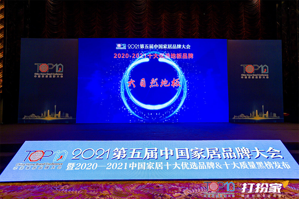 2021年7月19日下午,2021第五屆中國家居品牌大會在廣州隆重舉行,公開發(fā)布“2020-2021中國家居十大優(yōu)選品牌”36個榜單,大自然家居旗下大自然地板品牌強大的品牌綜合實力與口碑,榮膺“2020-2021十大優(yōu)選地板品牌”稱號。