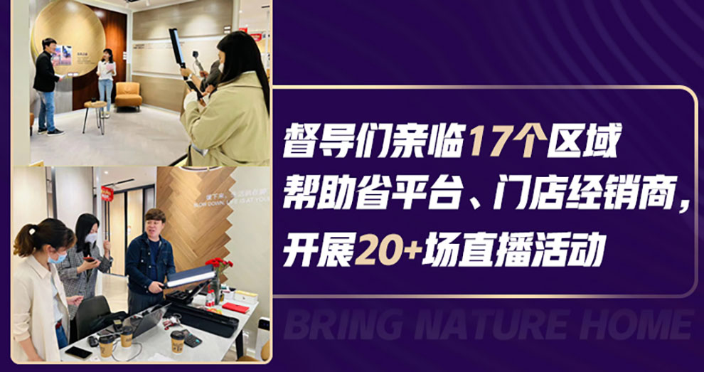 督導(dǎo)17個(gè)區(qū)域,開展20多場(chǎng)直播活動(dòng),進(jìn)一步都會(huì)經(jīng)銷商團(tuán)隊(duì),學(xué)會(huì)自主開展直播活動(dòng)。