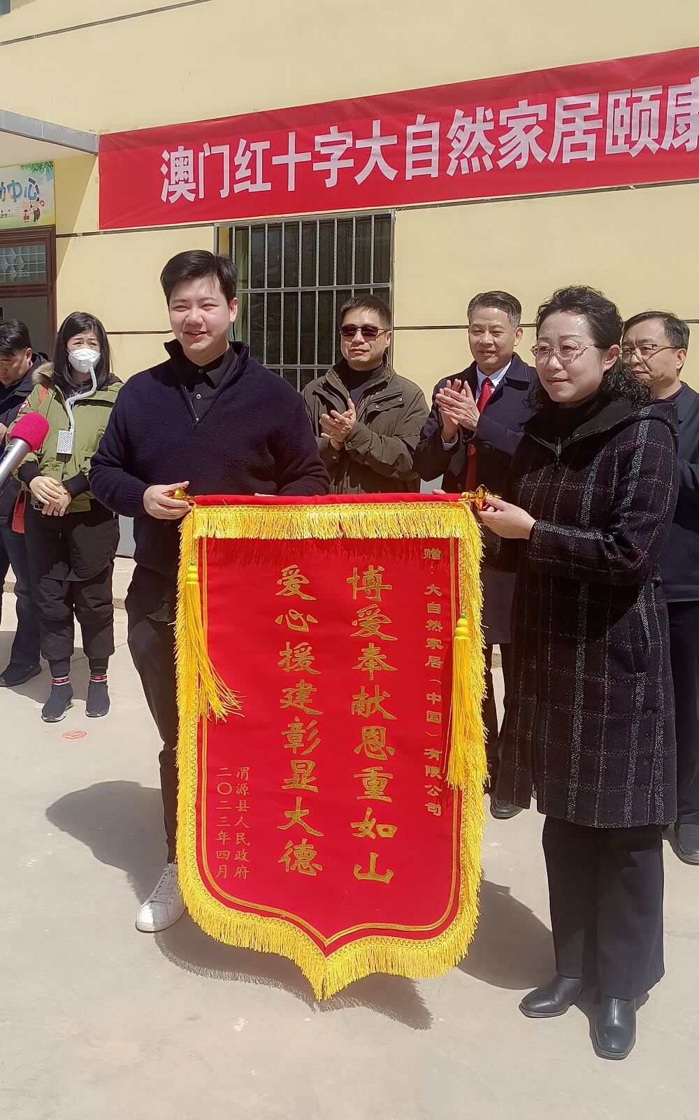 現(xiàn)場分別由定西市市政府代表、甘肅省紅十字會代表、澳門紅十字會代表、大自然家居董事長佘學(xué)彬以及大自然家居常務(wù)副總裁佘嘉浚共同完成揭牌儀式。