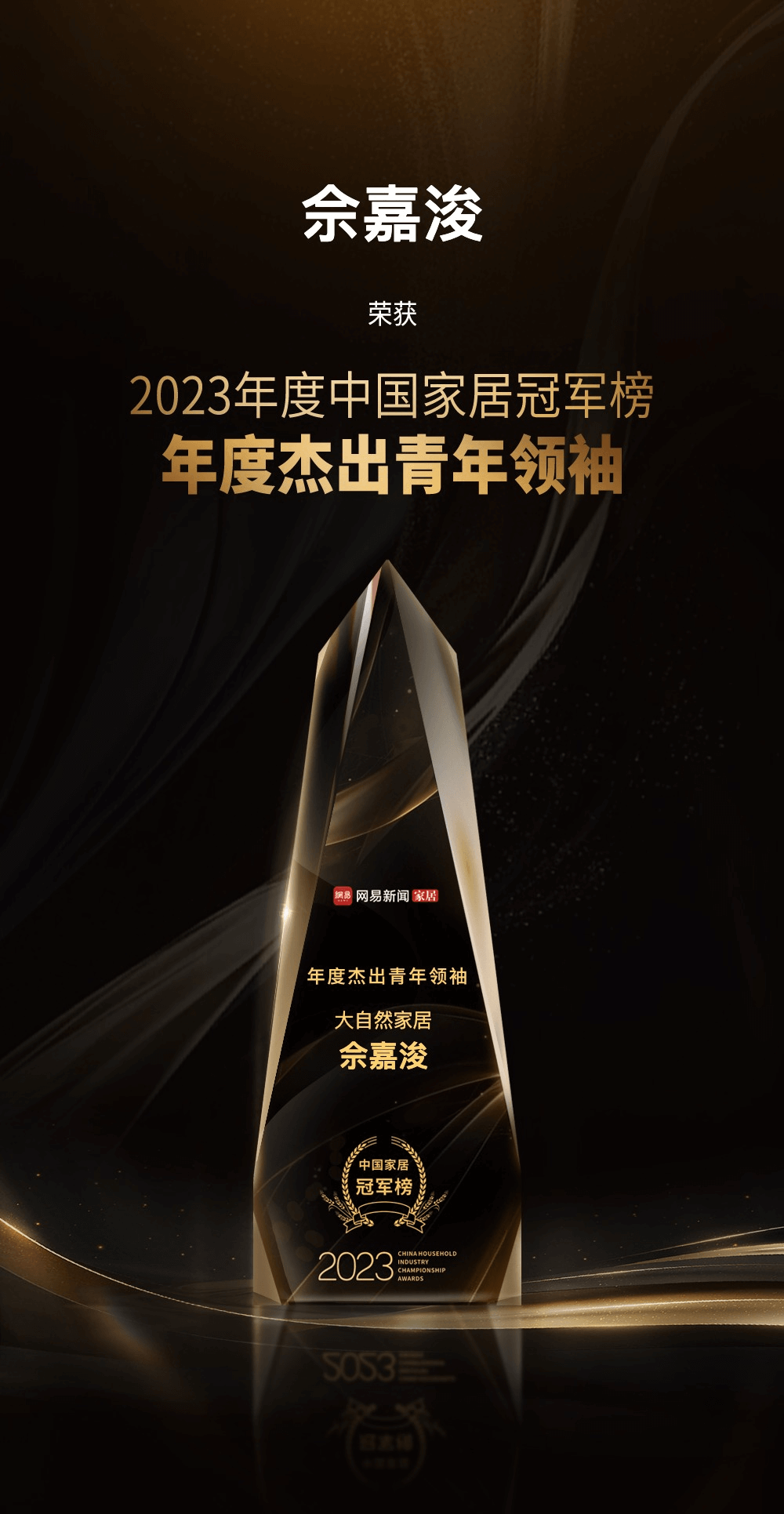 2023年12月27日,“向好生活提案——2023網(wǎng)易中國(guó)家居冠軍榜頒獎(jiǎng)盛典”隆重舉行,各大獎(jiǎng)項(xiàng)重磅揭曉,匯聚冠軍品牌能量,書寫家居行業(yè)全新華章。大自然家居榮獲2023中國(guó)家居冠軍榜“行業(yè)領(lǐng)軍品牌”獎(jiǎng)項(xiàng),與此同時(shí),大自然家居集團(tuán)董事長(zhǎng)佘學(xué)彬先生被授予“時(shí)代前行者”榮譽(yù)稱號(hào),集團(tuán)常務(wù)副總裁佘嘉浚先生榮獲“年度杰出青年領(lǐng)袖”榮譽(yù)稱號(hào)。