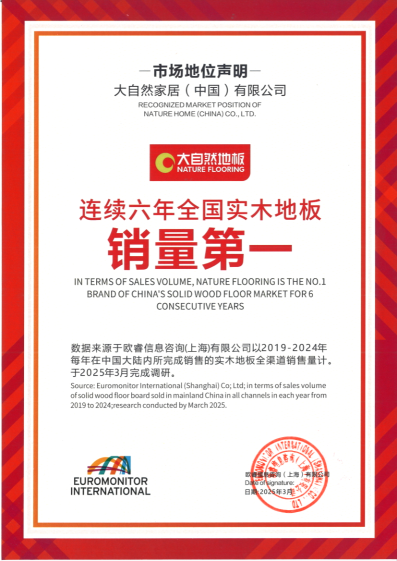 歐睿咨詢作為全球領(lǐng)先的權(quán)威市場調(diào)研機(jī)構(gòu),其數(shù)據(jù)以高度公信力享譽(yù)行業(yè)。據(jù)歐睿最新數(shù)據(jù)顯示,大自然家居實木地板連續(xù)六年穩(wěn)居“全國實木地板銷量第一”。這一成績,是大自然家居強(qiáng)大的產(chǎn)品力與市場競爭力的表現(xiàn),更印證其在消費(fèi)者心中的卓越口碑。