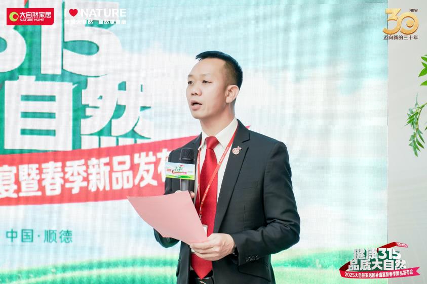 發(fā)布會伊始,大自然家居集團(tuán)副總裁、COO、CHO饒海清深刻闡述了大自然家居的品牌初心與未來愿景。饒海清表示,自1995年創(chuàng)立以來,大自然家居始終堅守“擔(dān)環(huán)保責(zé)任、普健康生活、做健康家居”的使命,以綠色健康為核心理念,持續(xù)探索可持續(xù)發(fā)展路徑。此外,他還強(qiáng)調(diào)讓億萬家庭享受健康家居,不是商業(yè),而是一份責(zé)任;讓綠色生活觸手可及,不僅是愿景,更是實實在在的行動。大自然家居將以實際行動踐行承諾,推動綠色家居成為新時代風(fēng)潮。