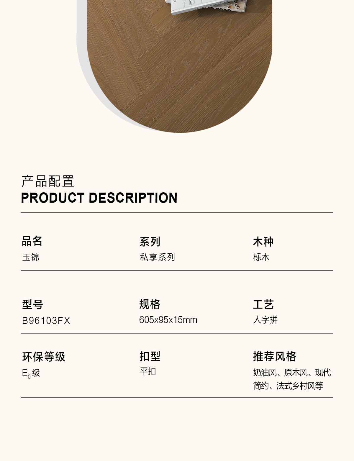 | 獨特工藝 | 人字拼 |