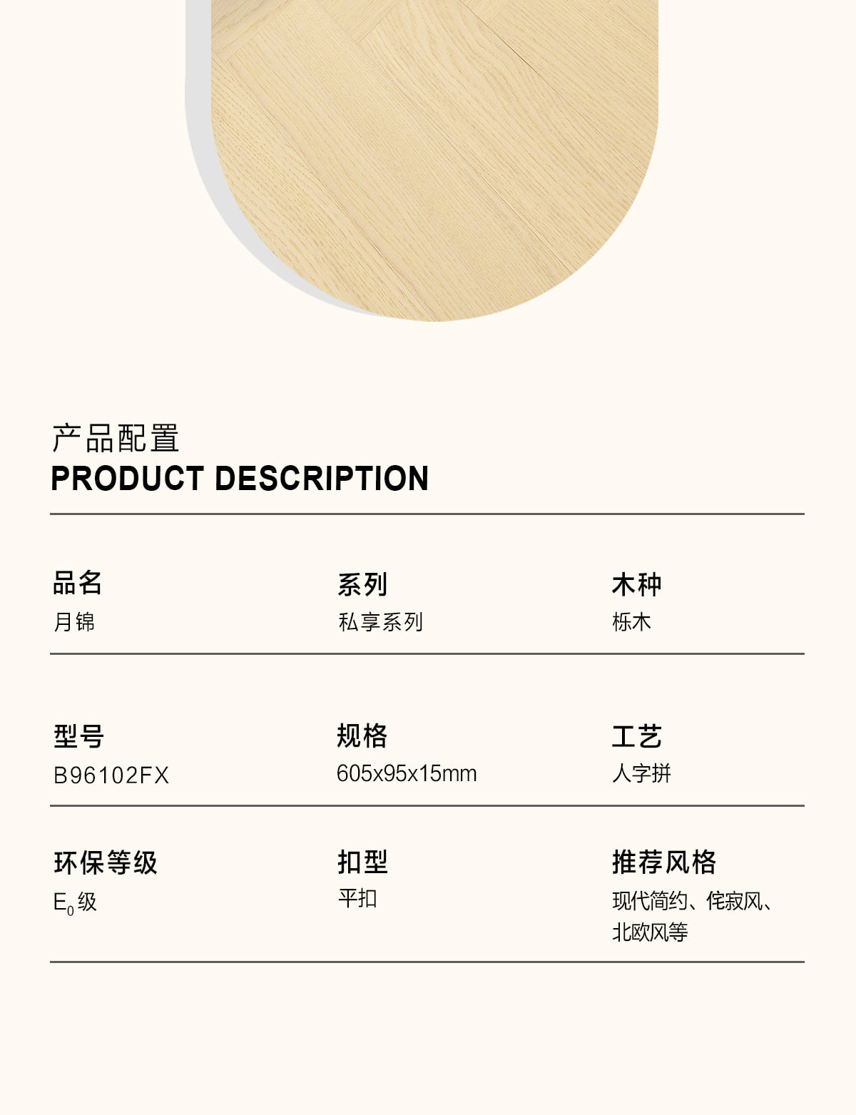 | 獨特工藝 | 人字拼 |
